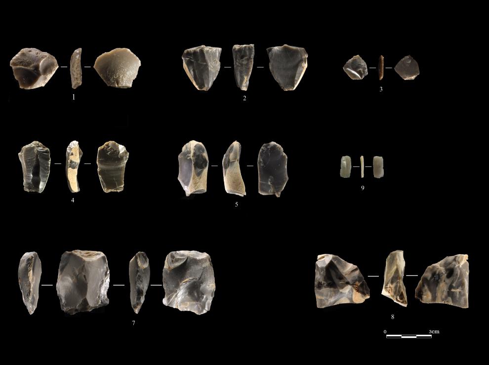 青池遺址第I發(fā)掘區(qū)出土的打制石器(舊石器時代)。天津市文化遺產(chǎn)保護中心供圖