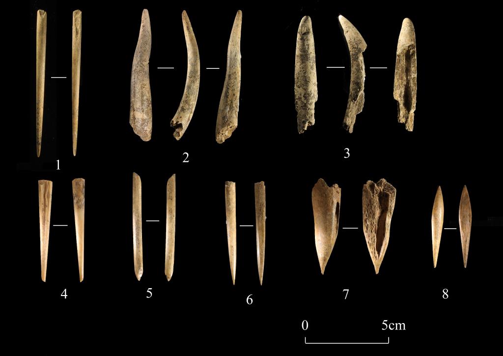 青池遺址第II發(fā)掘區(qū)出土的骨針、骨錐和骨角器(新石器時代)。天津市文化遺產(chǎn)保護中心供圖