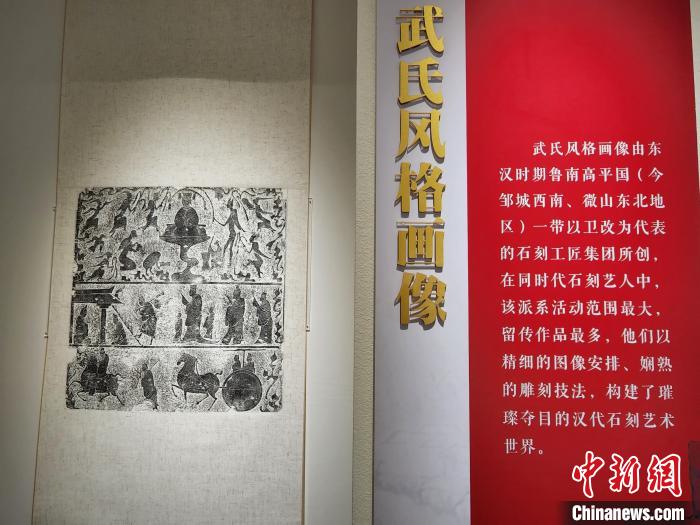 記者當(dāng)天在展覽現(xiàn)場了解到,武氏墓群位于今山東省濟寧市嘉祥縣城南15公里處,是一座東漢時期的家族墓地。武梁祠是其中的一座墓上石祠堂。以武梁祠為代表的武氏祠畫像,秉承三代鐘鼎玉器雕刻工藝,開啟魏晉唐宋繪畫的先河,其雕刻技藝之精妙,圖像內(nèi)容之豐富,居全國漢畫像石之首。