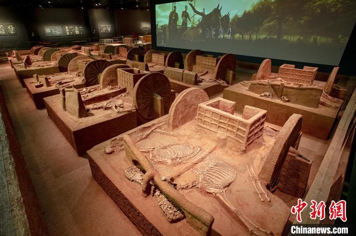 殷墟博物館新館內(nèi)的殷墟車馬遺跡展廳現(xiàn)場(chǎng)。 (中國國家文物局供圖)