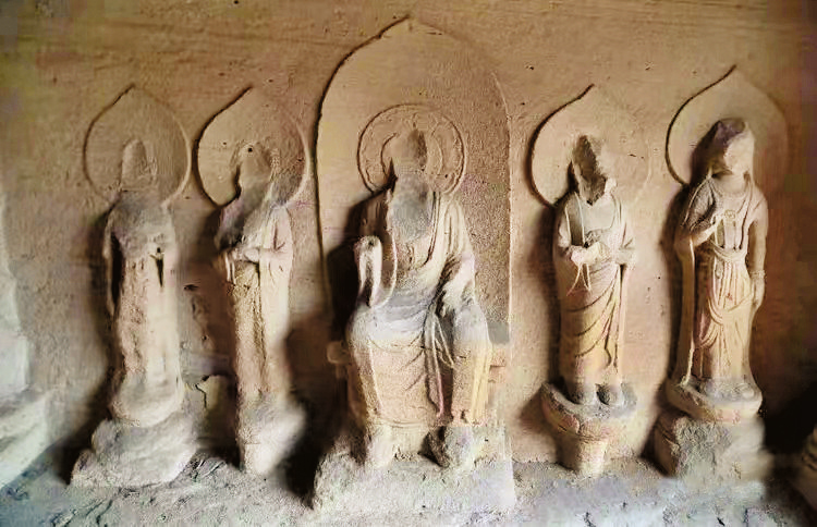 靜居寺石窟位于靜樂(lè)縣豐潤(rùn)鎮(zhèn)豐潤(rùn)村南500米寧白公路東側(cè)半山崖間,現(xiàn)存9窟,分布面積430平方米。據(jù)3至6窟間的摩崖碑記載,鑿于唐儀鳳二年(公元677年)。石窟均坐東朝西。1至6窟平面呈長(zhǎng)方形,平頂,四壁平直,高1.5米至1.8米,寬2米至2.5米,深1.5米至2.5米。火焰龕門,長(zhǎng)方形,高1.1米至1.5米,寬1米至1.4米。門兩側(cè)設(shè)方形石柱或八棱束蓮柱,門楣內(nèi)雕飛天或花卉??邇?nèi)均設(shè)低壇,三壁均設(shè)石造像。7至9窟呈長(zhǎng)方形,拱券頂。3至6窟外壁存摩崖碑3通,均螭首,碑文漫漶不清??唔斏喜看嬗锌唛艽???呶鱾?cè)存明萬(wàn)歷二十二年(公元1594年)及清嘉慶十五年(公元1810年)重修碑各1通。1986年5月公布為省級(jí)重點(diǎn)文物保護(hù)單位。2019年10月7日公布為全國(guó)重點(diǎn)文物保護(hù)單位。