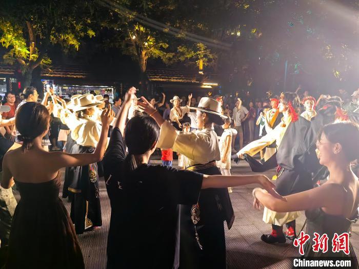 值得一提的是,為了讓觀眾更好地感受橫斷秘境的特色,開幕式當(dāng)晚,甘孜州木雅文化藝術(shù)博覽中心的演員們繼續(xù)在中國刀剪劍博物館、中國傘博物館的運河入口處,進(jìn)行鍋莊舞表演,帶領(lǐng)民眾共同感受鍋莊舞這一國家級非遺的魅力。