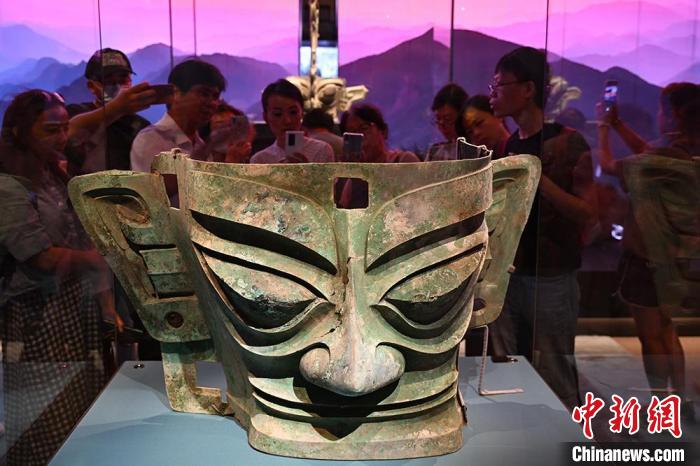 6月27日,“探秘古蜀文明——三星堆與金沙”展覽在北京大運(yùn)河博物館(首都博物館東館)開幕。圖為觀眾參觀展覽。中新社記者 田雨昊 攝 記者從首都博物館獲悉,本次展覽的展品來自故宮博物院、四川省文物考古研究院、成都金沙遺址博物館等12家博物館及文博機(jī)構(gòu)。展品極具古蜀文明特點(diǎn),雄偉的青銅大立人像、充滿神秘色彩的戴冠縱目青銅面具、璀璨奪目的金面具青銅人頭像等齊聚大運(yùn)河畔,展現(xiàn)中華文明的燦爛輝煌。 自1927年三星堆發(fā)現(xiàn)玉石器以來,三星堆遺址歷經(jīng)多次考古發(fā)掘,出土青銅器、玉器、金器等珍貴文物,發(fā)現(xiàn)城墻、宮殿、祭祀等重要遺跡。經(jīng)過考古人的努力,以三星堆文化、金沙文化為代表的古蜀文明面貌日漸清晰,為理解中華文明多元一體的起源發(fā)展增添重要實(shí)證。