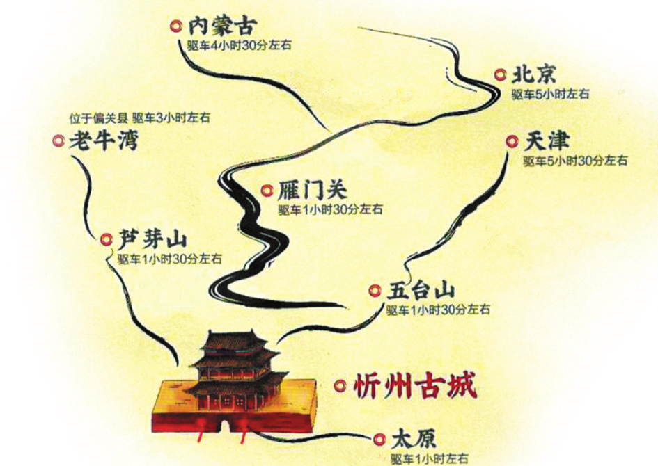 來到這里,你可以站在溝壑縱橫、梁峁起伏的黃土高原,欣賞懸崖峭立、水石相激的晉陜峽谷,也可以在古木參天、濃蔭蔽日的森林公園里散步,在百草茂盛、一望無垠的高山草甸上仰望星空。你可以游覽世界文化景觀遺產(chǎn)、佛教名山五臺(tái)山,也可以領(lǐng)略秀容、岢嵐、寧化、代州4座悠遠(yuǎn)古城的各有千秋,登攀三關(guān)營(yíng)堡、歷朝歷代的邊塞長(zhǎng)城。你可以在偏關(guān)老牛灣古渡、河曲西口古渡搖櫓渡河,回想晉商的輝煌,也可以身臨夜襲陽明堡飛機(jī)場(chǎng)遺址,重溫榮耀,感受歷史的震撼……