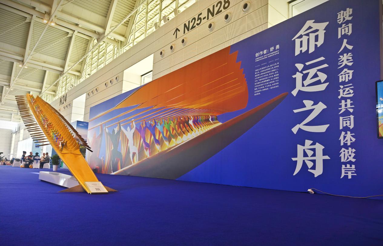 《命運之舟》雕塑作品以巨輪、龍舟、方舟、飛船的象征意義與形態(tài),概括提煉為國際化新圖騰雕塑,舟上迎著藍(lán)天劃向未來的72位奮力劃槳者,不分國度、不分種族、不分膚色,這是世界人民風(fēng)雨同舟、命運共同的象征。其宏偉的規(guī)模、深刻的寓意和精湛的藝術(shù)手法,成為本次文旅博覽會的一大亮點。