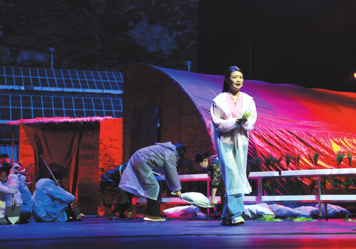 整體來說,話劇《三棵樹下》讓人感受到了編劇、導演以及演出全體的努力。無論是李小雨,還是曹民財,以及村民們,都被時代的洪流裹挾著,個體命運的軌跡不可避免地在歷史的變革洪流中發(fā)生改變。劇目結尾,以“鄉(xiāng)村文化旅游季”為契機,宋家溝村民們在李小雨、第一書記王家寶以及村委一干人帶領下,大力發(fā)展大棚經濟,農文旅齊發(fā)展,走上了增收致富的康莊大道,村民們由“要我干”到“我要干”,觀念一旦轉變,一切就大變模樣。你只要擺正位置,發(fā)揮自己的優(yōu)勢,就能在鄉(xiāng)村變革中展現嶄新的作為。這便是《三棵樹下》提供給我們的重要啟示。站在這個角度上說,話劇《三棵樹下》的成功也就是順理成章的事情了。其兼具思想深度、藝術張力和情感溫度,給予觀眾十分好的藝術享受。(趙志峰)