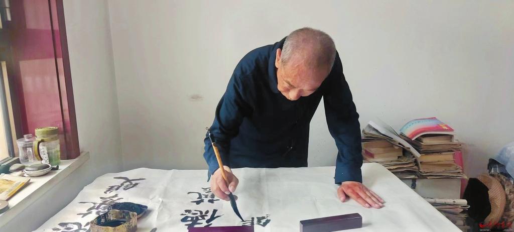 為了練字,他連手機也不買,惹得好多親朋好友找不到他。他橫下一條心,一個字可以練千遍、萬遍;一支毛筆握在手心不離不棄,天天寫,月月寫,年年寫,這一寫就寫了26年。為了寫好一個字,弄懂一個字,他不知道要練習多少遍,查多少次字典。由寫字到學文,他選擇了“四大名著”。古人筆錄者層出不群,“眼過千遍,不如手過一遍”。抄書不僅練習了書法,怡養(yǎng)性情,關鍵是補習了博大精深的中國文化。