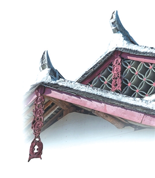 懸魚寓意豐富,蘊(yùn)含著古人對平安、幸福的向往。懸魚有祈求建筑免遭火災(zāi)的寓意,木結(jié)構(gòu)古建筑怕火,而魚為水中之物,懸魚有水能克火之意。不僅是懸魚,過去古建筑的屋頂上,常裝飾與水有關(guān)的意象,如龍、鴟吻、鰲魚、水草等。懸魚也有祈求吉祥、富貴有余等寓意。魚與“余”“?!敝C音,象征富余、富裕、吉慶有余。魚多子,也體現(xiàn)了人們祈求多子多孫的愿望。有的懸魚下端雕兩條尾部相交的游魚,寓意雙魚喜慶。懸魚除了使用魚的形象,也會(huì)采用其他紋樣,如蝙蝠紋樣,取“?!敝猓惶一?、荷花、梅花、牡丹等紋樣,寓意吉祥、和美、富貴;花瓶紋樣,象征平安等。后來,懸魚不斷演化,有了卷云如意、飛禽等圖案,造型的式樣也日趨豐富。