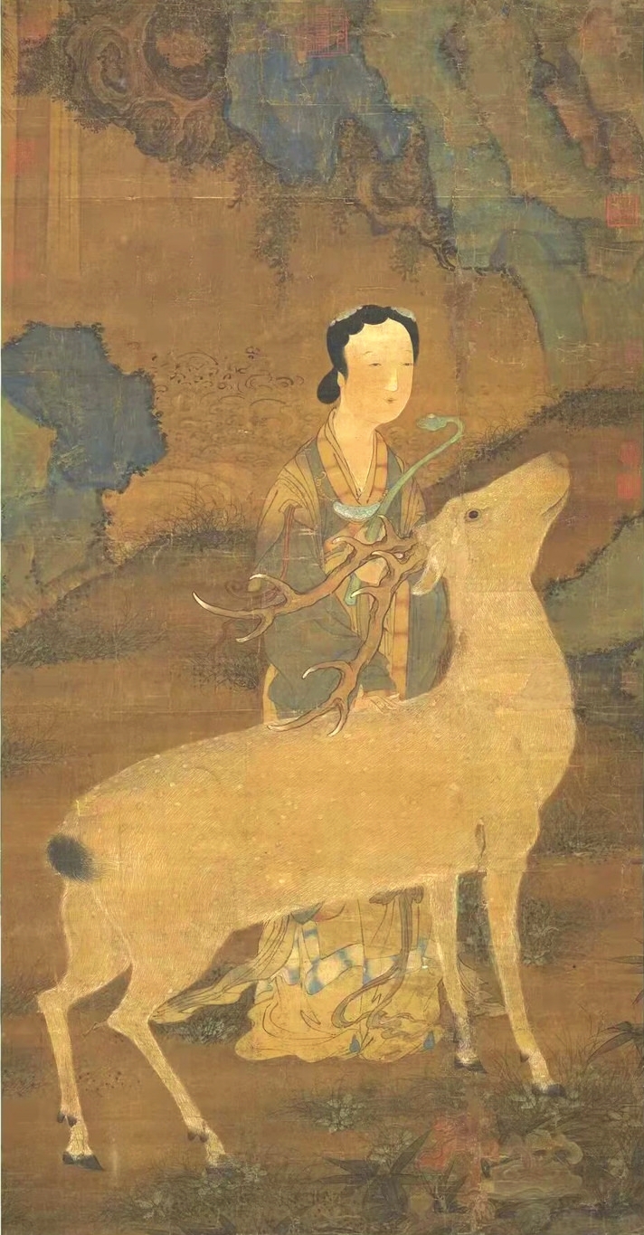 在傳統(tǒng)文化中,鹿是一種有神力的動物,神話傳說中鹿往往是神仙的坐騎。李白一生尋仙問道,其《夢游天姥吟留別》中有“且放白鹿青崖間,須行即騎訪名山”之名句。南極仙翁的白鹿,不僅被繪制在壽畫里,在文學(xué)中也大放異彩?!段饔斡洝分械陌茁咕褪菈坌悄蠘O仙翁的坐騎,偷得壽星的蟠龍拐杖后下凡為妖。在《白蛇傳》里,白娘子獨(dú)闖昆侖山,欲盜取起死回生的靈芝仙草,遭遇鶴、鹿二仙童阻攔。清代神魔小說《女仙外史》中的鹿童化為道人,下凡后為禍人間。屢破票房紀(jì)錄的動畫電影《哪吒2》,其中的反派之一鹿童,是無量仙翁的大弟子,擔(dān)任捕妖隊(duì)頭領(lǐng),戲份頗重。