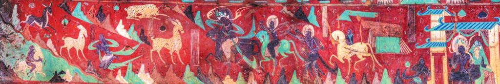 敦煌莫高窟第257窟的《鹿王本生圖》,是北魏時期的橫卷式壁畫,也是同類題材中保存最完整的連環(huán)畫,講述一只美麗的九色鹿王,救了一個不慎落入水中快被淹死的人,然而卻被此人出賣的故事。1981年上海美術(shù)電影制片廠推出的經(jīng)典動畫片《九色鹿》,就是以此壁畫為原型。