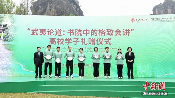 3月22日,第三屆武夷論壇在福建南平武夷山開幕。圖為參與論壇配套活動(dòng)“武夷論道:書院中的格致會(huì)講”高校學(xué)子禮贈(zèng)儀式。 (中國(guó)人民大學(xué)供圖)