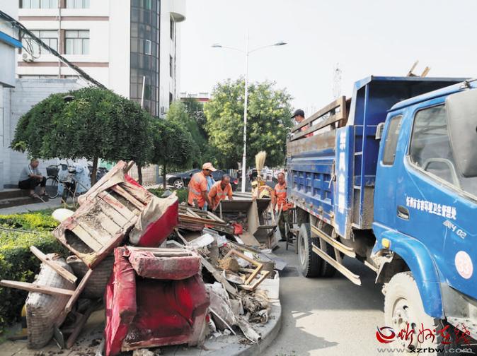8月2日,忻州城區(qū)環(huán)衛(wèi)工人正在清運垃圾。今年是第六屆創(chuàng)建全國文明城市評選決勝之年。在市創(chuàng)建全國文明城市總指揮部的統(tǒng)一協(xié)調(diào)指揮下,結(jié)合當(dāng)前正在開展的城區(qū)“兩下兩進兩拆雙修一提升”專項整治行動,近日,各單位和居民小區(qū)清潔環(huán)境,助力創(chuàng)建全國文明城市。市市容環(huán)境衛(wèi)生管理處組織環(huán)衛(wèi)工人和車輛對指定堆放的垃圾進行了集中清運。 張劍雄 攝