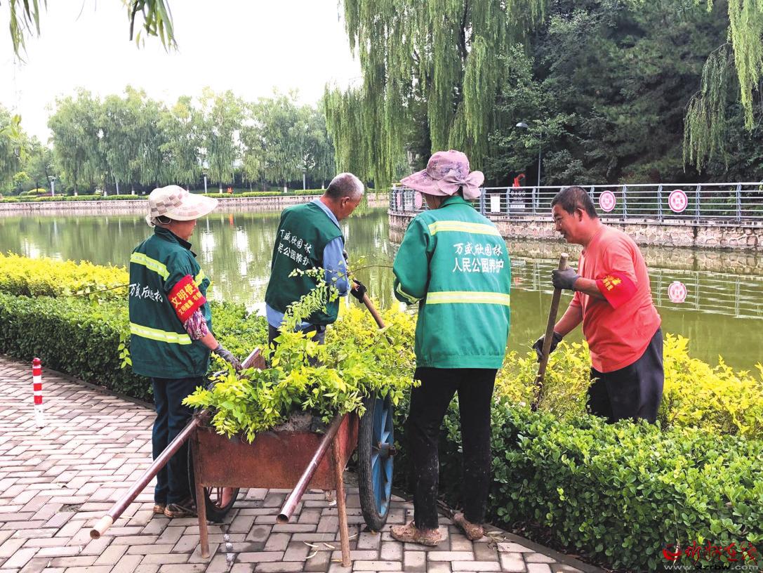 為美化綠化人居環(huán)境,營造“文明健康 有你有我”的社會(huì)氛圍,近日,佩戴“文明使者”袖章的園林工人在人民公園進(jìn)行苗木補(bǔ)植,對(duì)花卉進(jìn)行更換,助力我市創(chuàng)建全國文明城市。 張 曄 攝