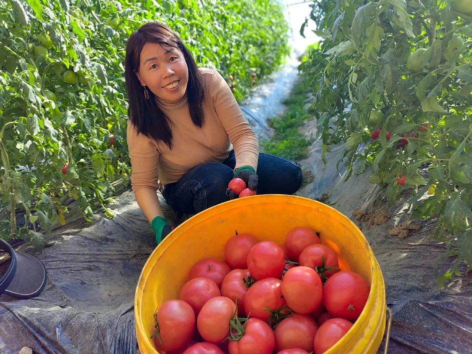 ▲裴玉兵在打理西紅柿秧苗