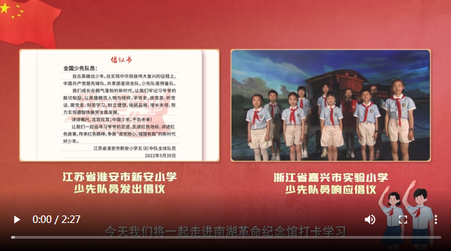 現(xiàn)代快報(bào)訊(記者 于露 王新月)2022年5月30日,是江蘇省淮安市新安小學(xué)少先隊(duì)員們收到習(xí)近平總書記回信一周年的日子。近日,他們向全國少先隊(duì)員發(fā)出“跟著習(xí)爺爺?shù)淖阚E學(xué)黨史”的倡議。浙江省嘉興市實(shí)驗(yàn)小學(xué)的少先隊(duì)員們第一時(shí)間響應(yīng)倡議,追尋習(xí)爺爺?shù)淖阚E,打卡南湖革命紀(jì)念館,講述紅色故事,傳承紅色精神。