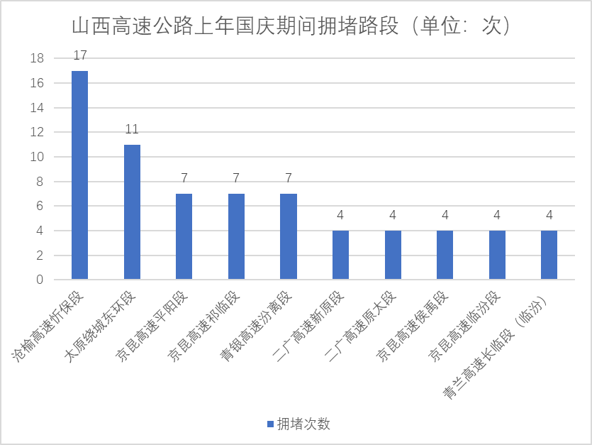(5)流量較大路段:主要擁堵路段集中在G1812滄榆高速忻保段、G2003太原繞城東環(huán)段,另G5京昆高速平陽段、G5京昆高速祁臨段、G20青銀高速呂梁段等部分路段在高峰時段可能會出現(xiàn)車多緩行現(xiàn)象。
