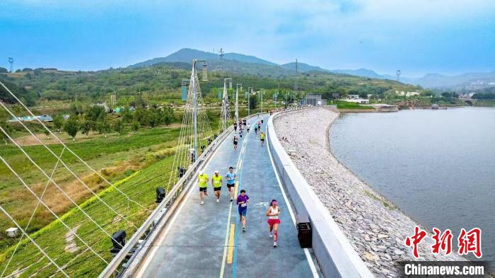 釜山村開展以“中秋月圓 釜山團圓”為主題的康養(yǎng)環(huán)湖跑活動,200名選手燃情開跑。 高平市融媒體中心供圖