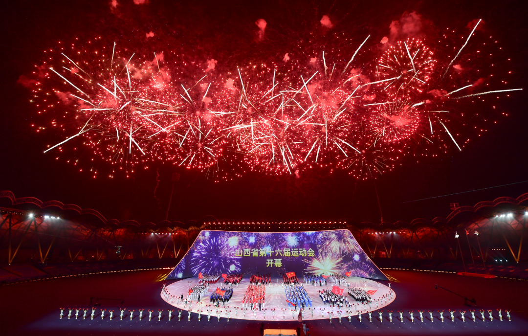 富有地域特色的暖場表演過后,在一萬多名現(xiàn)場觀眾聲震云霄的倒計時中,開幕儀式正式開始。國旗和會旗入場儀式后,各代表隊運動員、教練員在引導(dǎo)員和執(zhí)旗手的引導(dǎo)下,闊步入場。大同和朔州作為東道主,壓軸亮相,得到了觀眾的熱烈歡呼。之后,升國旗儀式和升會旗儀式莊嚴進行,山西省第十六屆運動會宣布開幕。