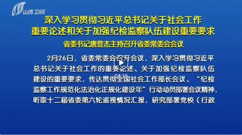 山西日報報道 2月26日,省委常委會召開會議,深入學習貫徹習近平總書記關(guān)于社會工作的重要論述、關(guān)于加強紀檢監(jiān)察隊伍建設(shè)的重要要求,傳達貫徹全國社會工作部長會議、“紀檢監(jiān)察工作規(guī)范化法治化正規(guī)化建設(shè)年”行動動員部署會議精神,聽取十二屆省委第六輪巡視情況匯報,研究部署黨校(行政學院)工作。省委書記唐登杰主持會議。