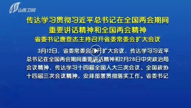山西日?qǐng)?bào)報(bào)道3月12日,省委常委會(huì)召開(kāi)擴(kuò)大會(huì)議,傳達(dá)學(xué)習(xí)習(xí)近平總書(shū)記在全國(guó)兩會(huì)期間重要講話精神和2月28日中央政治局會(huì)議精神,傳達(dá)學(xué)習(xí)十四屆全國(guó)人大三次會(huì)議、全國(guó)政協(xié)十四屆三次會(huì)議精神,安排部署貫徹落實(shí)工作。省委書(shū)記唐登杰主持會(huì)議。