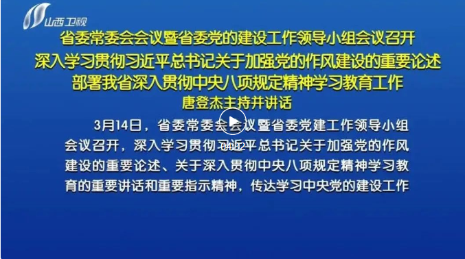 山西日?qǐng)?bào)報(bào)道 3月14日,省委常委會(huì)會(huì)議暨省委黨建工作領(lǐng)導(dǎo)小組會(huì)議召開(kāi),深入學(xué)習(xí)貫徹習(xí)近平總書(shū)記關(guān)于加強(qiáng)黨的作風(fēng)建設(shè)的重要論述、關(guān)于深入貫徹中央八項(xiàng)規(guī)定精神學(xué)習(xí)教育的重要講話和重要指示精神,傳達(dá)學(xué)習(xí)中央黨的建設(shè)工作領(lǐng)導(dǎo)小組會(huì)議精神,按照《關(guān)于在全黨開(kāi)展深入貫徹中央八項(xiàng)規(guī)定精神學(xué)習(xí)教育的通知》要求,對(duì)全省開(kāi)展學(xué)習(xí)教育進(jìn)行安排部署,審議通過(guò)《關(guān)于在全省開(kāi)展深入貫徹中央八項(xiàng)規(guī)定精神學(xué)習(xí)教育的實(shí)施方案》。省委書(shū)記、省委黨的建設(shè)工作領(lǐng)導(dǎo)小組組長(zhǎng)唐登杰主持會(huì)議并講話。