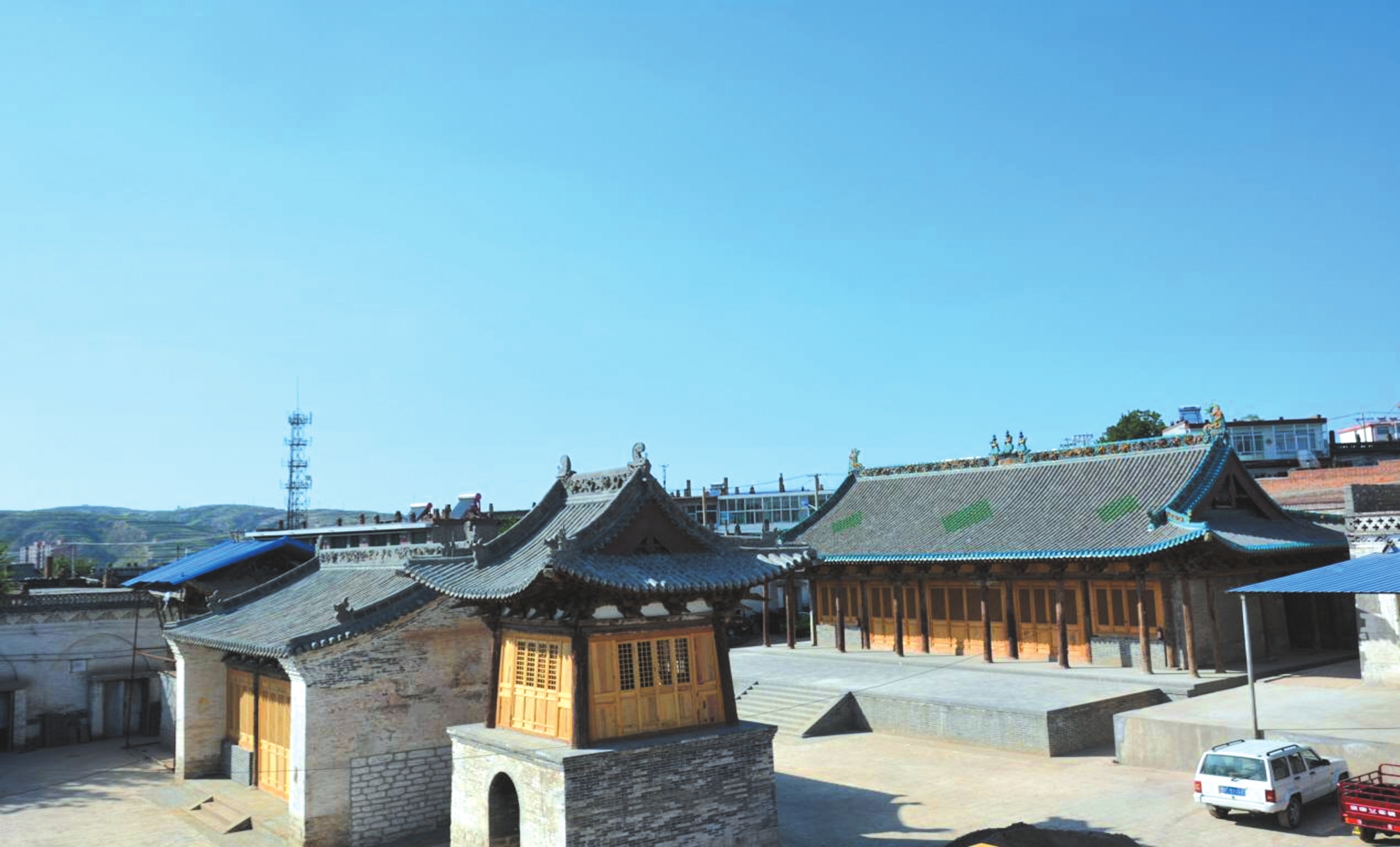 隆崗寺位于偏關(guān)縣新關(guān)鎮(zhèn)城內(nèi)隆崗街,又稱南寺廟。該廟坐北朝南,南北長(zhǎng)38米、東西寬26米,占地面積988平方米,建筑面積454平方米。寺廟始建于唐代,明清時(shí)曾重修,中軸線現(xiàn)存天王殿、正殿,兩側(cè)為鐘樓、鼓樓。正殿建于高1.2米的石砌臺(tái)基上,面寬五間,進(jìn)深六椽,四周圍廊,單檐歇山頂,綠琉璃瓦剪邊,七檁前后廊式構(gòu)架,斗拱三踩單昂,平身科每間一攢,門窗已被后人改動(dòng)。