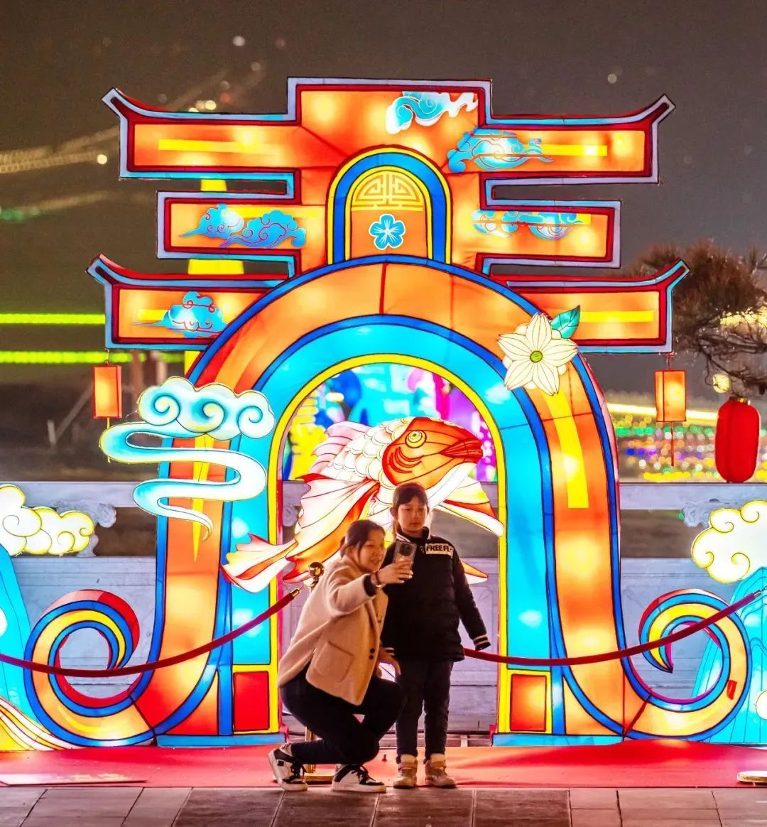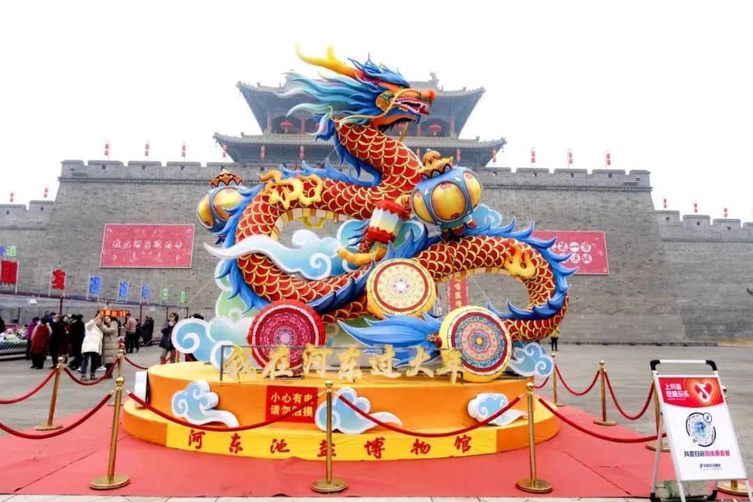 在運城,河東池鹽文化博覽園的龍年燈會上游人如織,春節(jié)喜慶氛圍濃郁;