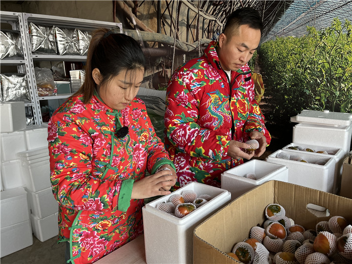 現(xiàn)在正值盤錦堿地柿子集中上市時期,王海濤和張爽每天都忙得團團轉(zhuǎn)。“今年訂單量比去年明顯增加不少,上升到每天200單左右。”張爽說。
