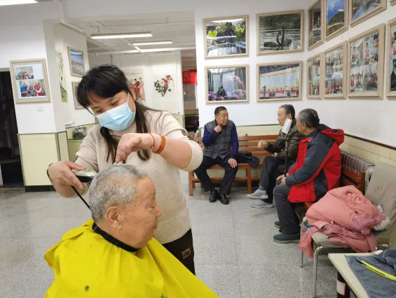 ▲志愿者為老人理發(fā)