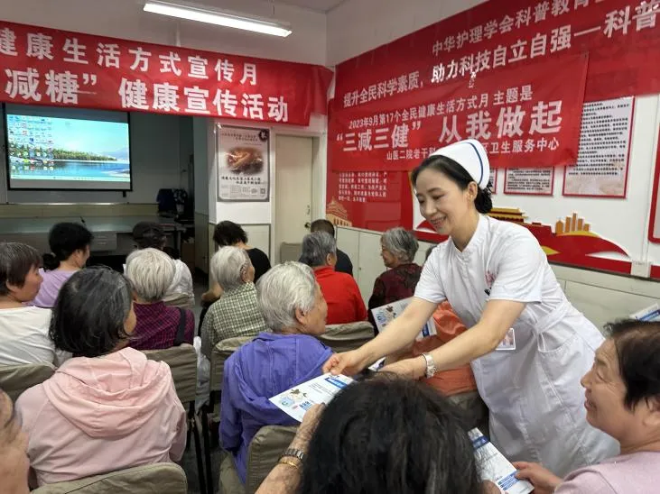 除了慢病管理工作室,山醫(yī)大二院社區(qū)還聯(lián)合轄區(qū)山醫(yī)大二院老干部科、杏花嶺社區(qū)衛(wèi)生服務(wù)中心,開(kāi)設(shè)健康知識(shí)講座,邀請(qǐng)山醫(yī)大二院專(zhuān)家為老年群體講授“減鹽、減油、減糖”、壓瘡專(zhuān)業(yè)護(hù)理、高血壓保健等方面的健康知識(shí)。