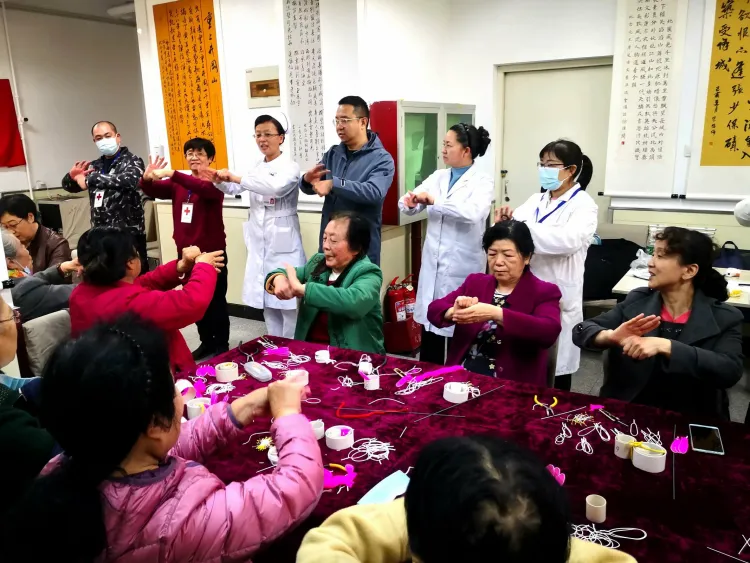 “我們還會(huì)定期為老年人開(kāi)展美發(fā)服務(wù)、智能手機(jī)培訓(xùn)班、古琴班講座等活動(dòng),其中最受大家歡迎的還是我們科室成員自創(chuàng)開(kāi)發(fā)的健腦手指操?!鄙结t(yī)大二院老干部科科長(zhǎng)李曉峰介紹,“手指操”創(chuàng)編出來(lái)后,每天下午在大院廣場(chǎng)上,有的高齡老人坐著輪椅來(lái)做操,有的老人在家里隔著玻璃做操,可謂是風(fēng)靡一時(shí)。這項(xiàng)活動(dòng)除了能鍛煉老年人的手眼協(xié)調(diào)能力、專(zhuān)注力和記憶力,還能延緩?fù)嘶俣取?/p>