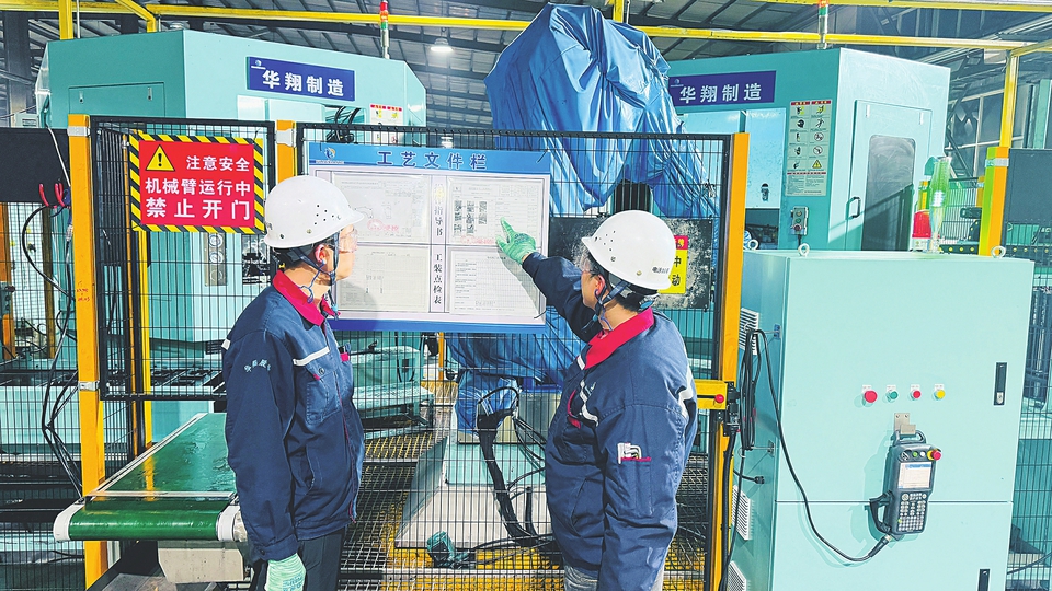 華翔圣德曼新能源汽車零部件加工車間。本報記者郝薇攝