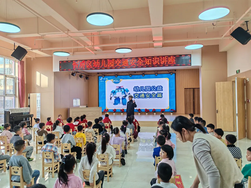 活動中,交警向園內(nèi)幼兒及教職工播放了幼兒交通安全宣傳視頻,通過對視頻內(nèi)容的講解,引導(dǎo)孩子們進(jìn)一步理解交通安全法規(guī)與出行安全。
