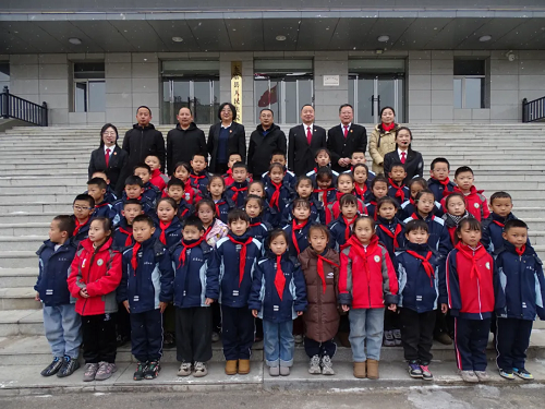 12月4日,五寨縣第四小學校40余名師生走進五寨法院,“沉浸式”學習憲法法律知識,零距離感受法院文化。黨組成員、副院長華韡,黨組成員、政治部主任馮超宇陪同參觀。